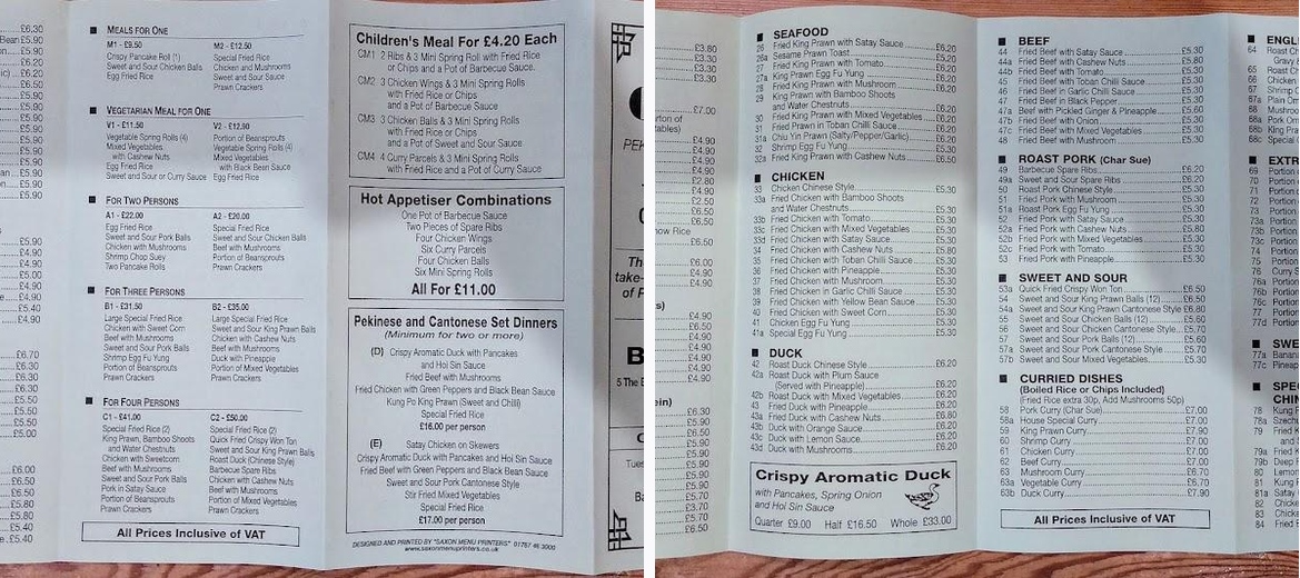 Salt and pepper chips aren’t on the menu but they happily do them and super yummy. No free prawn crackers with an order the only let down as it’s pretty standard on orders over a certain value.