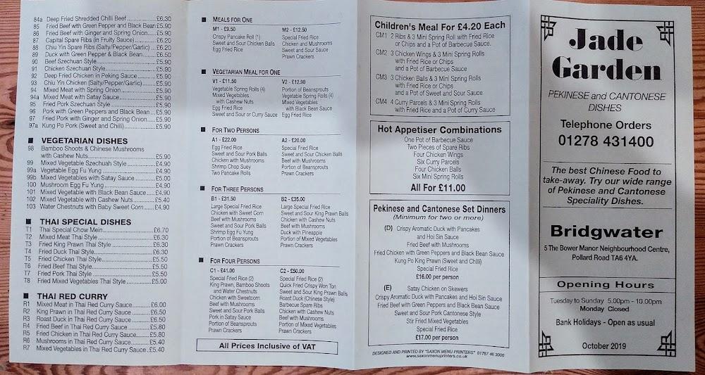 Situated on Pollard Road in Bridgwater, Jade Garden serves as a cornerstone of the local dining scene. This Chinese takeaway and restaurant prides itself on its outstanding variety of dishes and excellent service. The restaurant attracts a diverse clientele, from families enjoying dinner out to busy professionals looking for a quick takeaway meal. Jade Garden is open seven days a week, providing consistent accessibility and convenience for late-night cravings. The welcoming atmosphere invites diners to savor generous portions of flavorful dishes, while the staff’s attentive service enhances the experience. A frequent favorite among locals, this establishment has built a loyal following over the years and is often bustling with activity, particularly during dinner hours. The restaurant also has free parking, making it an easy stop for families and visitors alike.
